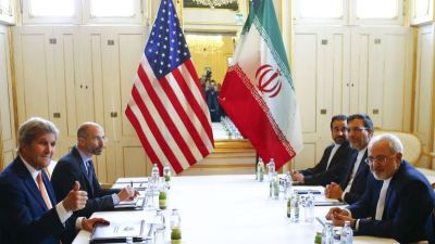 U.S. Secretary of State John Kerry, left, and Iran's Foreign Minister Mohammad Javad Zarif meet in Vienna, Austria. (Leonhard Foeger/AFP/Getty Images)