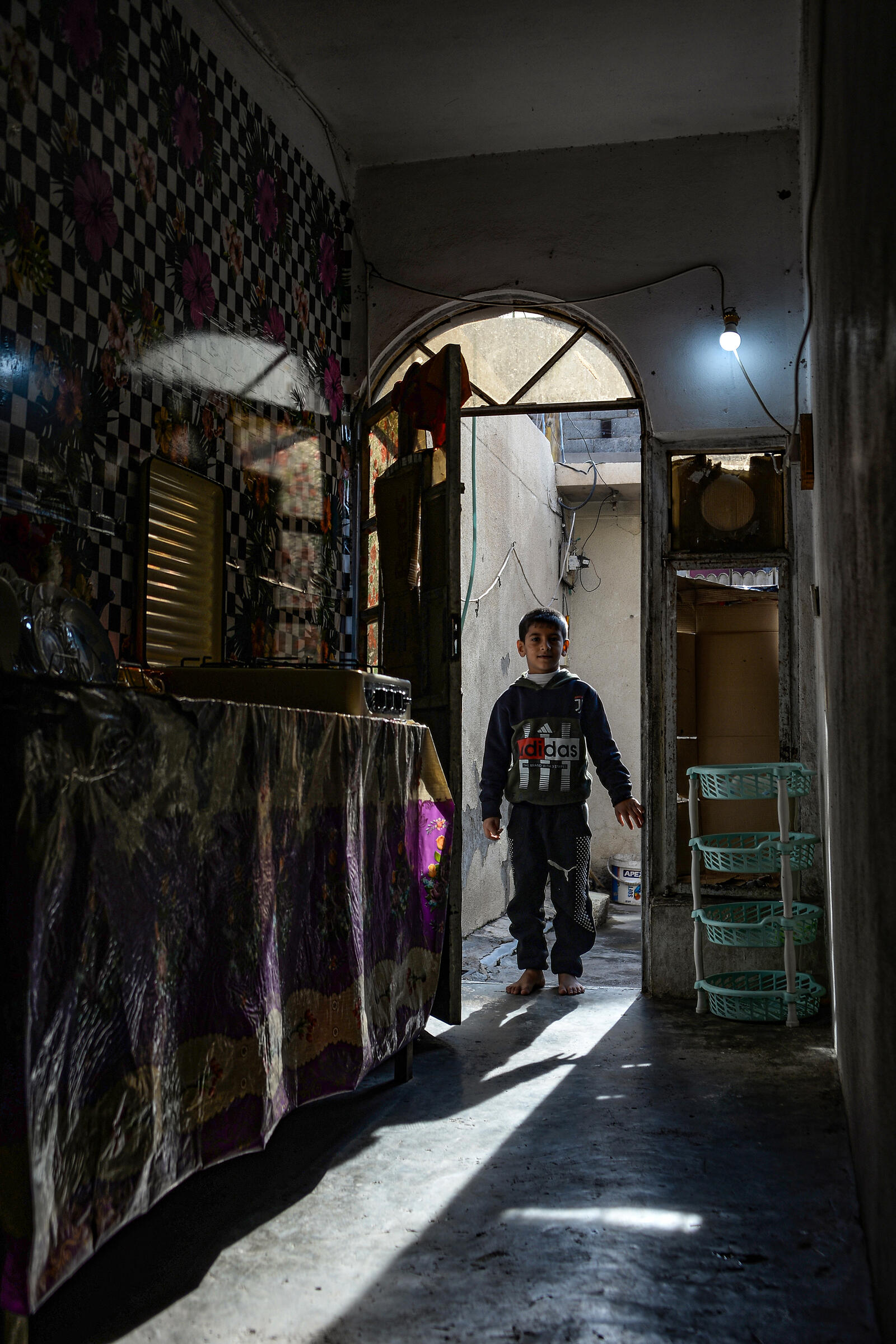 One of the children of Alia Abdel-Razak, a woman deprived of crucial civil status documents, is pictured in her dilapidated home in Iraq's northern city of Mosul on December 11, 2022. Abdel-Razak, like many in Mosul struggles with endless red tape, but also the fallout from the grueling battle to defeat the Islamic State group, to obtain documents like marriage and birth certificates. The absence of civil status documents obstructs access to basic services such as "education, healthcare, and social security benefits", according to the United Nations refugee agency UNHCR. (Photo by Zaid AL-OBEIDI / AFP)