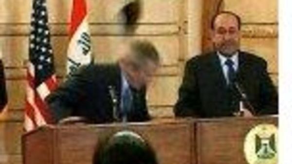 Muntazer al-Zaida, a reporter for Iraqi-based al-Baghdadiya TV, was arrested on 14 December 2008 for throwing his shoe at Bush during a news conference with Iraqi Prime Minister Nouri al-Maliki. He was sentenced to three years on charges of assault, but served a shortened sentenced since he had no previous criminal record. Later, his sentence was reduced by 25 percent for good behavior.