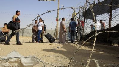 Palestinian travellers gather at the Rafah crossing with Egypt in the southern Gaza Strip on Friday after Egypt closed its borders. AFP Photo