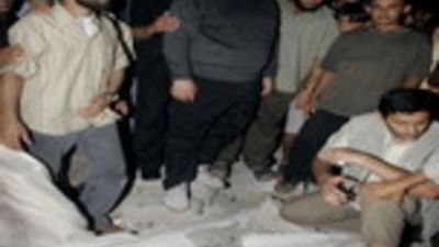 Four Palestinians were killed and three others were wounded Saturday at pre-dawn when Israeli warplanes bombarded a house in the Gaza Strip City of Rafah, security and medical sources said. They told WAFA that Israeli warplanes fired a number of missiles at the house and a group of people near Abu Youssef al-Najjar hospital, killing four and wounding three seriously.