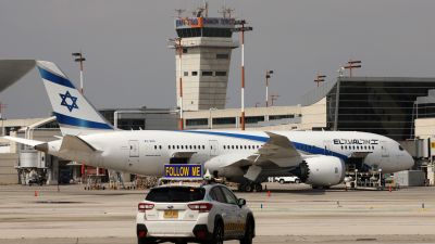 A picture taken on February 20, 2022 shows an Israeli Airlines El Al Boeing 787 at the tarmac in Israel's Ben Gurion International airport in Lod, on the outskirts of Tel Aviv. (Photo by JACK GUEZ / AFP)