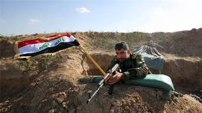 A Kurdish fighter holds a position near Kirkuk, Iraq. (AFP/File)