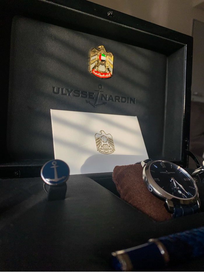 A special watch from the UAE's Deputy Prime Minister Mansour bin Zayed Al Nahyan to an American businessman between 2018 and 2019 (Courtesy of Kevin D. Jack)