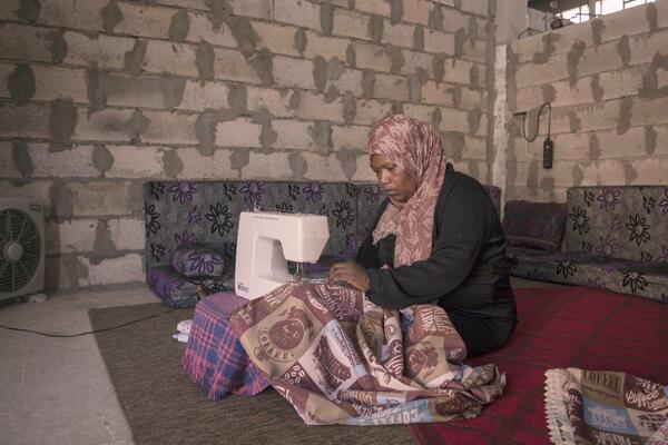 November 2019, Tawargha (Libya). A woman sews clothes for selling at her house in Tawargha. Photo: © UNDP Libya/ Malek Elmaghrebi.