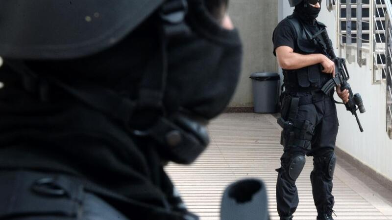 Members of the Moroccan special forces stand guard inside the Moroccan Central Bureau of Judicial Investigation (BCIJ) building on September 14, 2015 in Rabat. (AFP/Fadel Senna)