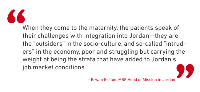 With this free-of-charge facility, MSF has become the main reproductive health actor in North Jordan. “This has placed us in a unique position to witness the hopes brought by new lives as well as the potential threat it represents for babies who may never see their country of origin,” explains Erwan Grillon, MSF Head of Mission in Jordan. Behind the innocence of a newborn, there will be a quest for identity in a country where Syrian refugees represent a heavy burden according to the Jordanian authorities. Stress on the local economy, unemployment, overloaded health system, terrorist threat are some of the issues raised by a tired Jordanian community.