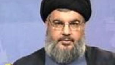 "Zionist-American propaganda is aiming to harm our nation's consciousness. They, using their violent system, are trying to tell us that we are weak and powerless. They want to tell us that we don't have any hopes of winning," Nasrallah continued.