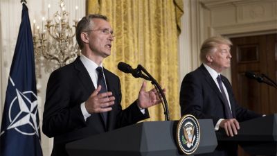 NATO Secretary General Jens Stoltenberg (L) and US President Donald Trump hold a joint press conference in the East Room at the White House in Washington, DC, on April 12, 2017. (AFP/Brendan Smialowski)