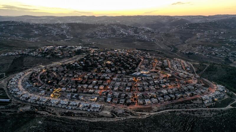 This picture taken on November 17, 2020 shows an aerial view of the Israeli settlement of Tekoa in the occupied West Bank, south of Bethlehem. MENAHEM KAHANA / AFP