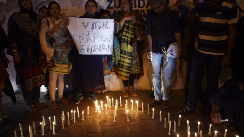 Pakistani activists and mourners light candles during a vigil in Karachi on February 17, 2017, to pay tribute to the victims of a bomb attack on a Sufi Muslim shrine. (AFP/Rizwan Tabassum)