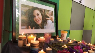 A makeshift memorial was set up where her body was found on Main Drive, covered in flowers and notes for the Israeli student.