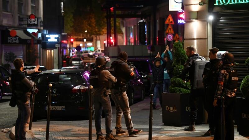 Police check passersby near the Champs Elysees in Paris after a shooting which left one officer dead and two wounded. (AFP/Franck Fife)