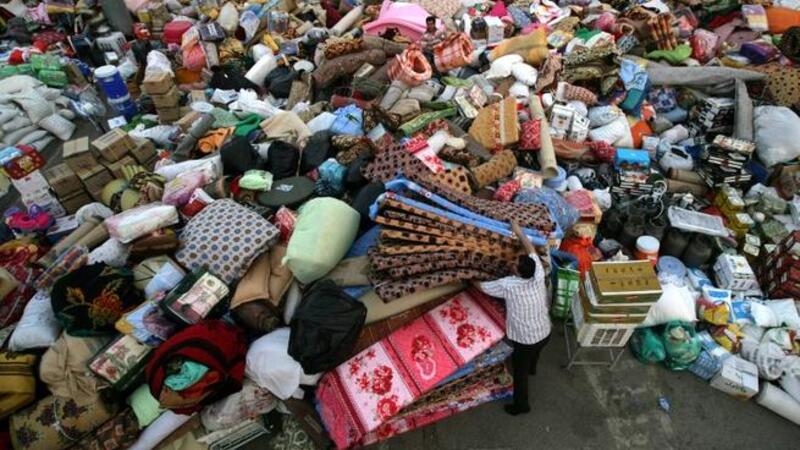 IRAQ, Arbil : An Iraqi-Kurdish man delivers mattresses as the Iraqi Red Crescent Society gathers aid supplies for Syrian refugees in the city of Arbil, the capital of the autonomous Kurdish region of northern Iraq, on August 19, 2013. TOPSHOTS/AFP PHOTO / SAFIN HAMED