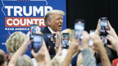 Former U.S. President and 2024 Presidential hopeful Donald Trump arrives to a Team Trump Volunteer Leadership Training at the Grimes Community Center in Grimes, Iowa, on June 1, 2023. (Photo by ANDREW CABALLERO-REYNOLDS / AFP)
