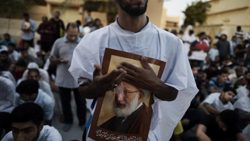 Bahraini protesters hold posters of Sheikh Qassim in June, after Bahraini authorities stripped him of his citizenship. (AFP/File)