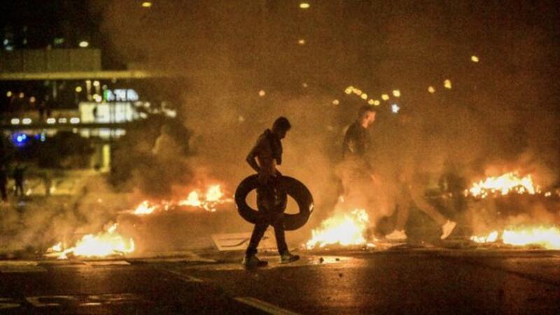 Dramatic pictures show tyres being burnt in the street and a large plume of smoke rising above Malmo, in the south of the Scandinavian country.