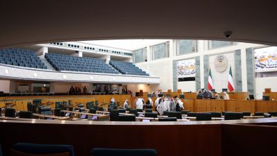Kuwaiti Members of Parliament arrive to attend a parliament session at the National Assembly in Kuwait City on January 16, 2024. (Photo by YASSER AL-ZAYYAT / AFP)