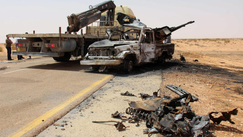 The remains of vehicles bombed by Daesh militants in Libya. (AFP/File)