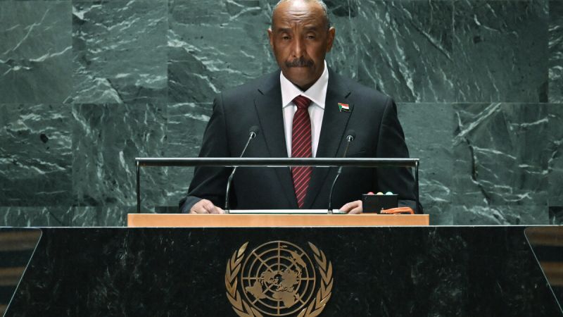 President of the Transitional Sovereignty Council of Sudan Abdel-Fattah Al-Burhan Abdelrahman Al-Burhan addresses the 78th United Nations General Assembly at UN headquarters in New York City on September 21, 2023. (Photo by Ed JONES / AFP)