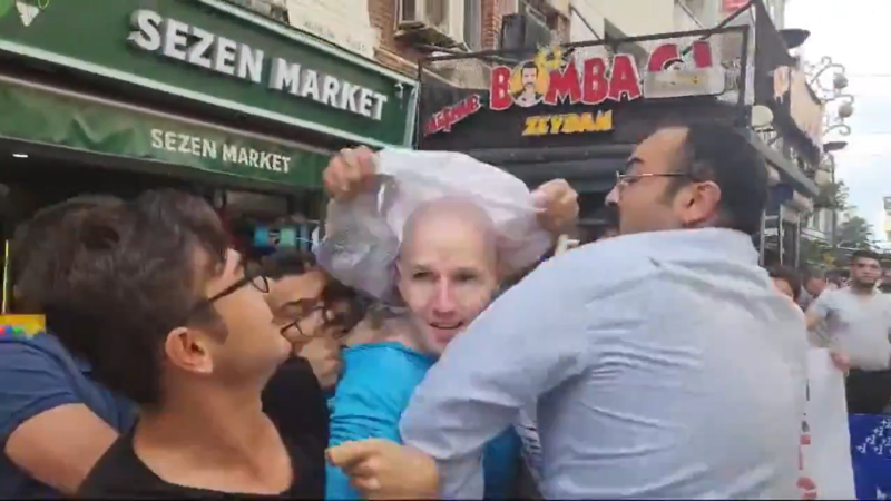 "Vatan Party Youth Vanguard and TGB members have bravely covered an American officer's head with a sack! This is a present from the youth of Turkey to everyone fighting back against Israeli and American aggression in Gaza and Palestine! Zionists, imperialists, and US military have no place on our territory! We are proud of their boldness!"