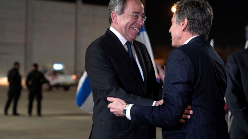 US Ambassador to Israel Thomas Nides welcomes Secretary of State Antony Blinken on arrival to Ben Gurion airport in Lod near the Israeli city of Tel Aviv. (Photo by Jacquelyn Martin / POOL / AFP)