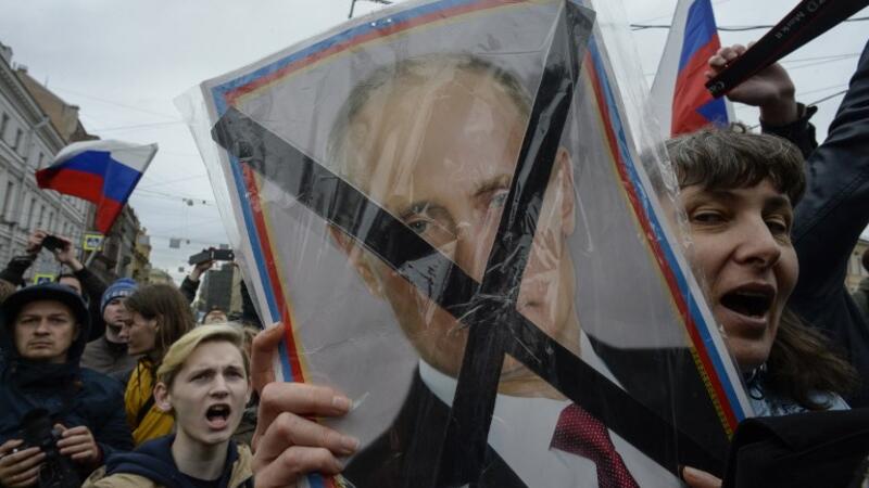 The rallies were in protest of Putin's inauguration Monday. The president, who won his fourth term with almost 77 percent of the votes, has been in power since 2000.