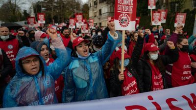 "We are getting poorer every day and more, but everything is going well according to the gentlemen who run the country. We say that we can no longer meet our needs," Arzu Tserkezoglou, president of the Confederation of Revolutionary Trade Unions, told protesters during Sunday’s rally.