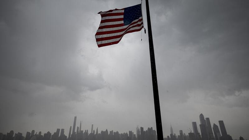 An US flag flies at half-mast half mast in front of the Skyline of Manhattan of New York City seen from Weehawken, New Jersey, on April 21, 2020. Over 2.5 million people have been confirmed to have contracted the coronavirus worldwide, with 80 percent of cases in Europe and the United States, according to an AFP tally Tuesday based on official figures. Johannes EISELE / AFP