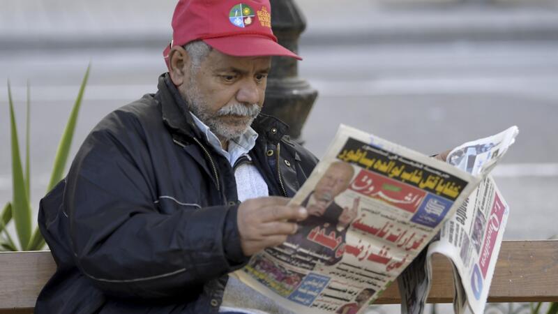 A Tunisian man reads a newspaper on Habib Bourguiba Avenue in the capital Tunis on December 14, 2021, one day after Tunisia's president extended his months-long suspension of parliament until new elections in December 2022, while calling for a July referendum on constitutional reforms. (Photo by FETHI BELAID / AFP)