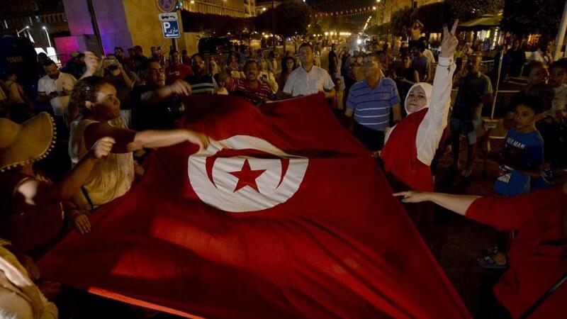 WATCH: Supporters of Tunisian President Kais Saied celebrate the almost certain victory of the "yes" vote in a referendum on a new constitution of Tunisia. #referendum pic.twitter.com/9evaVcx0Ij