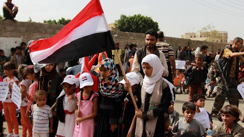 Yemeni children demonstrate against the removal of the Saudi-led coalition from the United Nations annual child rights blacklist, in front of United Nations (UN) office in Sanaa, on June 15, 2016. (AFP/Mohammed Huwais)