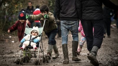 Saturday’s first wave of vulnerable children was welcomed by members of human rights organizations carrying balloons and placards reading “refugees welcome”.