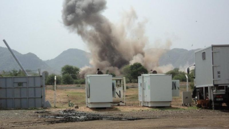 Two bombs land very close to the UN Mission in Sudan (UNMIS) compound in Kauda on June 14, 2011 as Khartoum stepped up air strikes in South Kordofan on the south Sudan border, causing "huge suffering" to the civilian population and endangering emergency aid, the United Nations said. AFP PHOTO / STR (Photo by AFP)
