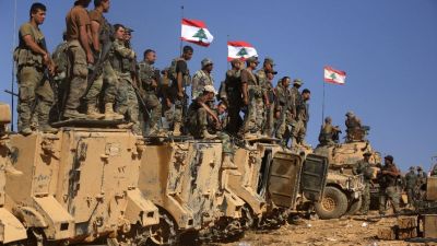 Lebanese soldiers stand on armoured vehicles on a hill they took from the Islamic State (IS) group in Jurud Ras Baalbek on the Syrian-Lebanese border. (AFP/File)