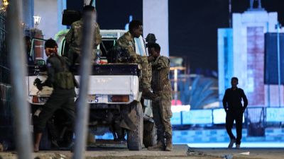 Security forces patrol near the Hayat Hotel after an attack by Al-Shabaab fighters in Mogadishu on August 20, 2022. (Photo by Hassan Ali ELMI / AFP)