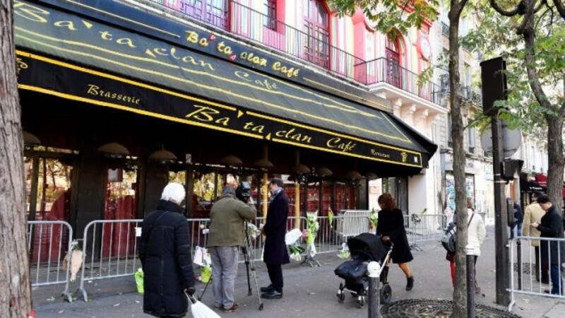 People walk in front of the Bataclan concert hall in Paris on November 11, 2016. (AFP/Miguel Medina)