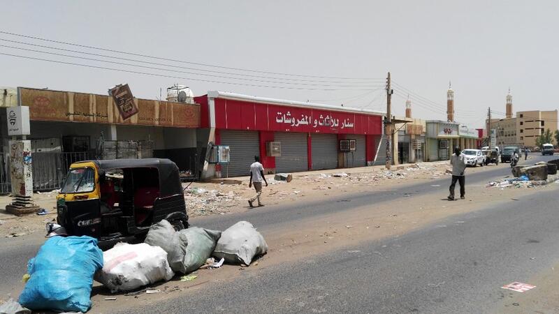 People walk in front of closed shops in the Sudanese capital Khartoum on June 10, 2019, the second day of a nationwide civil disobedience campaign called to pressure the ruling military into handing over power. (AFP/ File Photo)