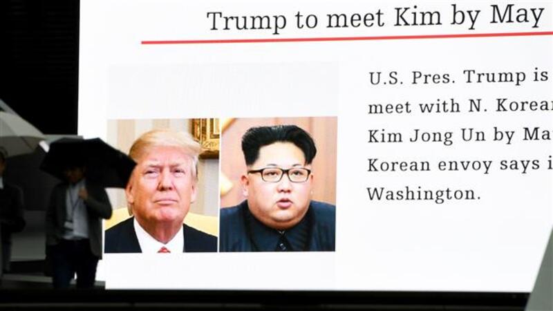 A huge screen flashing a news report in Japan on a possible meeting between US President Donald Trump and North Korean leader Kim Jong-un, March 9, 2018. (AFP/ File Photo)