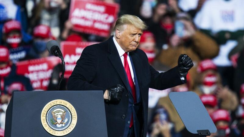 After painting a picture of what the United States would look like if governed by Democratic presidential nominee Joe Biden -- including fracking and a nationwide lockdown -- Trump said the only way to stop it is to "show up on Nov. 3."