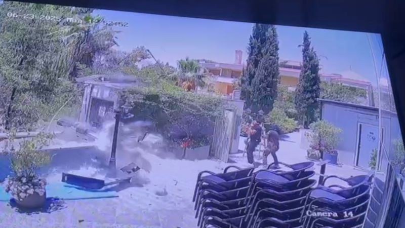 A video showing the moment the drone shrapnel falls near two standing men was shared online, showing two males escaping from the site to avoid being injured.