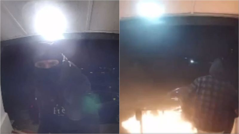 Two attackers set a mosque on fire. (Doorbell camera screenshots/ X)