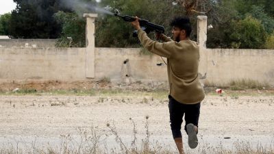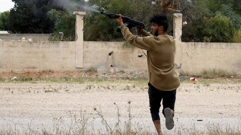 A fighter loyal to the Libyan internationally-recognised Government of National Accord (GNA) fires a Kalashnikov rifle during clashes against forces loyal to strongman Khalifa Haftar, on May 21, 2019. (AFP/ File Photo)