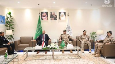 Photo of the STC Chief and member of the PLC, Aidroos Al-Zubaidi visiting the Joint Forces Command in Riyadh and meeting Commander Lt. Gen. Fahd bin Hamad Al-Salman on November 28, 2024. Photo credit: Aidaros Al-Zubaidi (@AidrosAlzubidi)