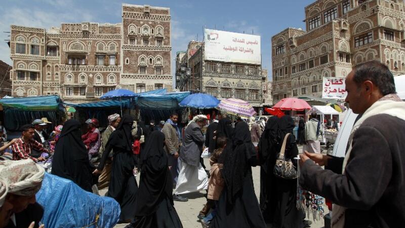 Yemenis shop at a market in the old city of the capital Sanaa on May 5, 2016. (AFP/Mohammed Huwais)