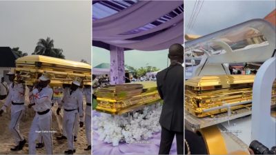 Mama Asetu was laid to rest inside a gold-plated casket, which people said cost ranges between ₦100 million ($68,937) and ₦150 million (over $103,000).