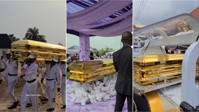 The gold coffin has gone viral online, with dozens of videos and photos being shared slamming the luxurious funeral of Prophet Jeremiah's mother.
