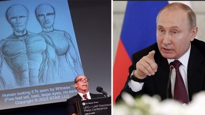 A drawing, which was created after Aliens were described by witnesses, was shared during the hearing showing how Aliens look like and their characteristics. However, it caused massive discussion online for its resemblance to Vladimir Putin.