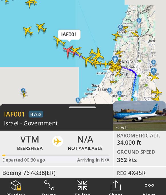 Posts emerged on social media allegedly saying that flight tracking data showed Israel's Wing of Zion, Boeing 767, registration 4X-ISR, the aircraft of Netanyahu, had left Israel for an unknown destination.