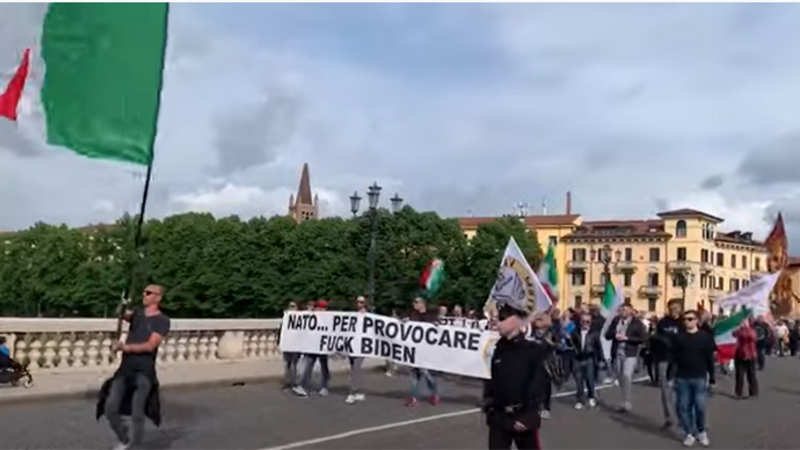 Crowd in Verona chant "NATO is a killer" and carry banners insulting Biden. pic.twitter.com/lc8GZlQ6MP